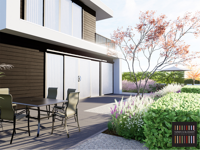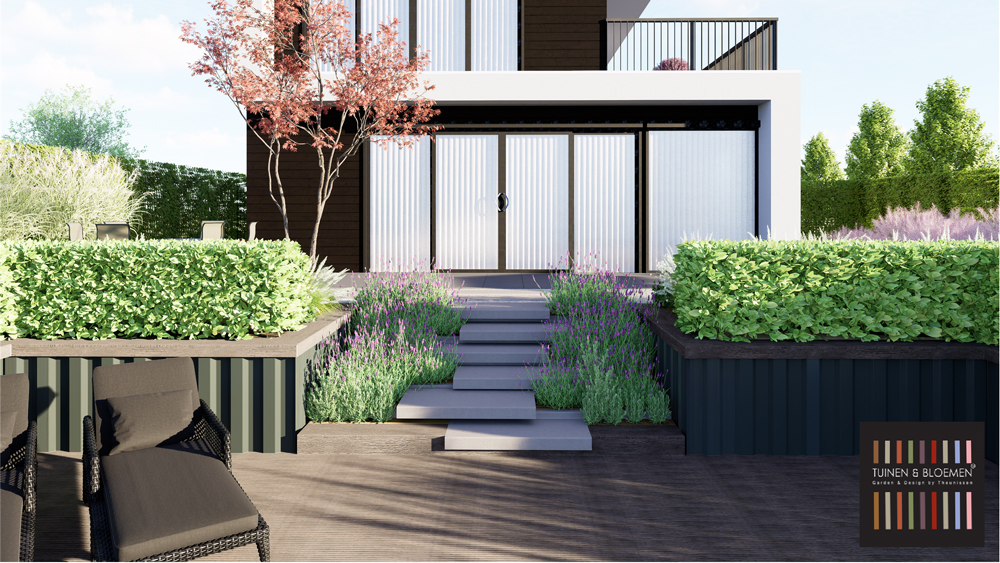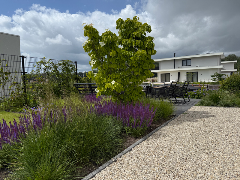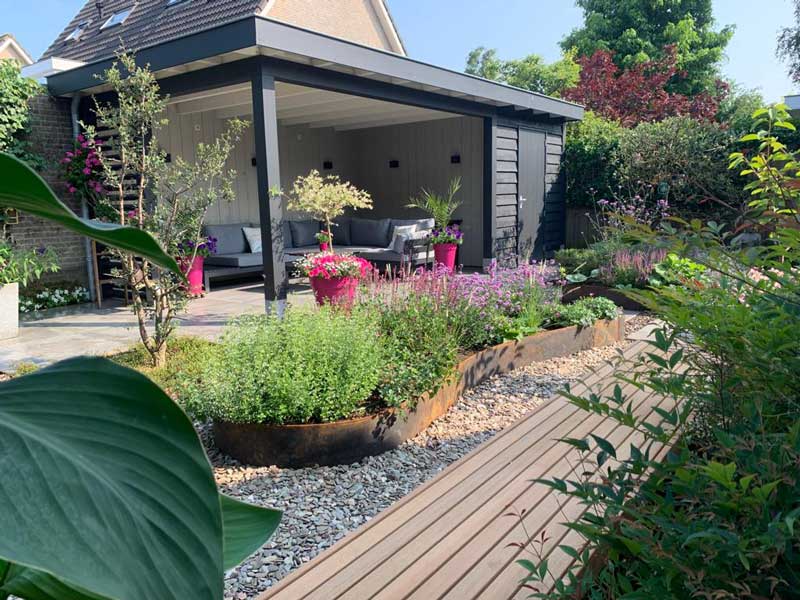 “Wat te doen met onze postzegel van amper 5x5m? Henrie heeft een paar voorstellen gedaan en gezamelijk hebben we er een verder uitgewerkt. Wij zijn superblij met het resultaat.” Rob